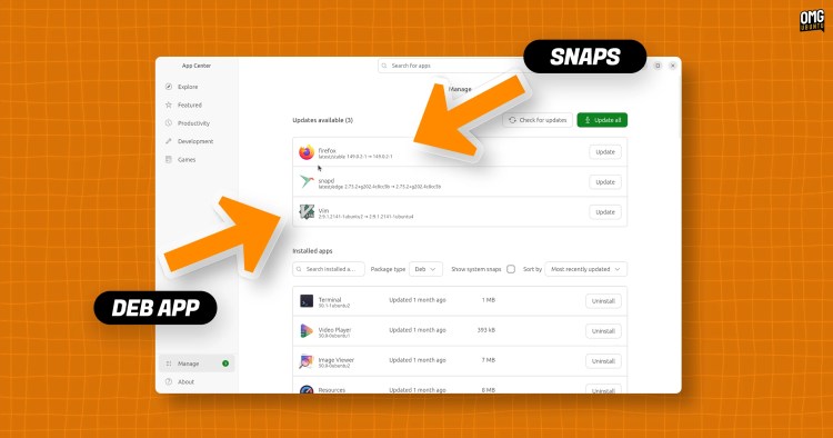 应用中心的“管理”部分增加了一个过滤器,可以单独查看已安装的 Deb 软件或与 Snap 一起查看。这是 Canonical 统一软件管理努力的一部分。