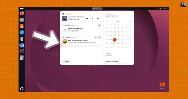 Ubuntu 26.04 引入了新的文件夹图标,采用鲜艳的颜色并继承桌面强调色。登录屏幕背景更深,模态对话框外观更新,圆角值更一致。此外,锁屏界面新增了媒体控制器,无需解锁即可控制播放。